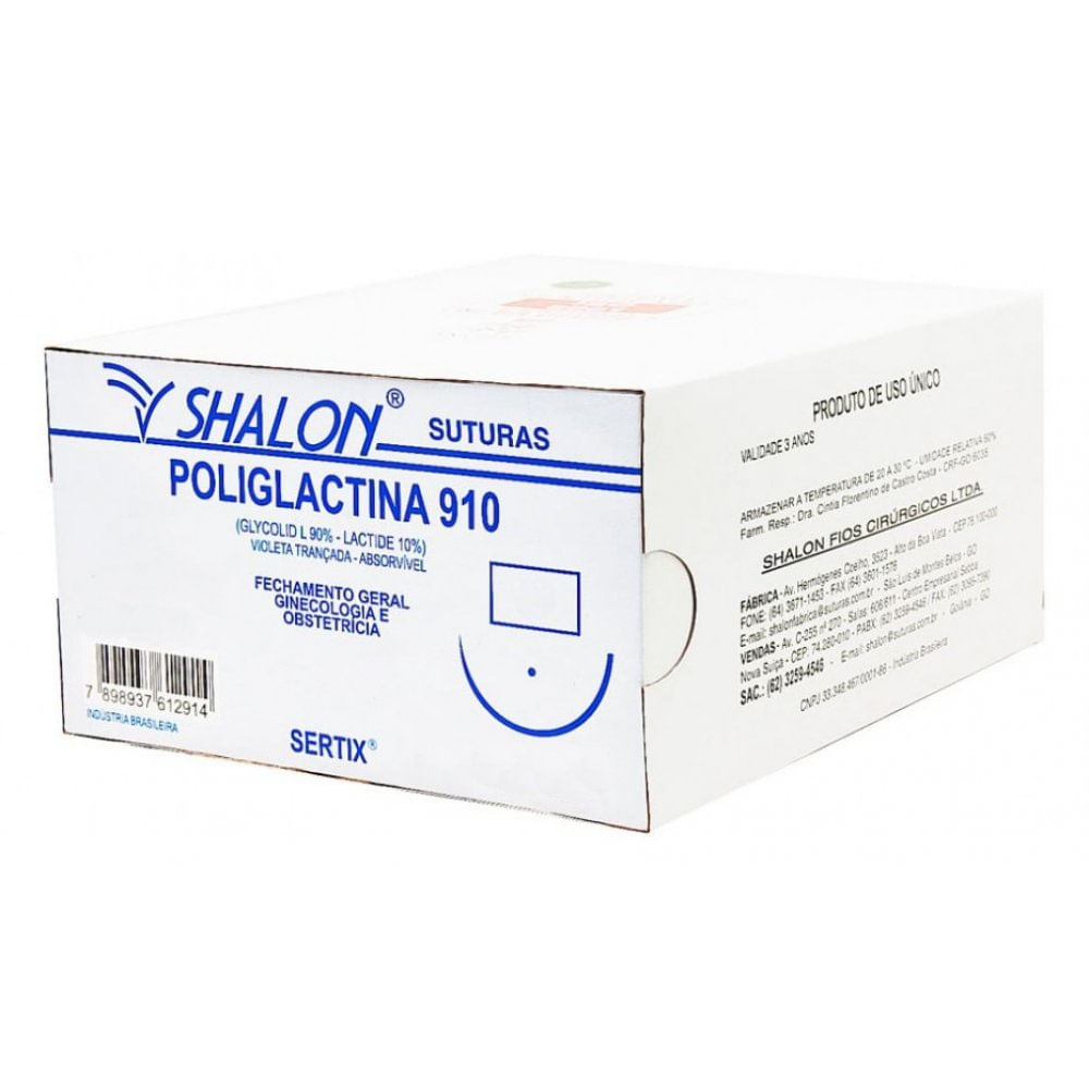 A sutura de Poliglactina 910 é apresentada nos números cirúrgicos 8-0 a 1 e métrico 0,04 a0,499. A sutura é apresentada estéril em comprimentos preestabelecidos com 01 (uma) ou 02 (duas) agulhas de vários tipos e esterilizada em óxido de etileno.